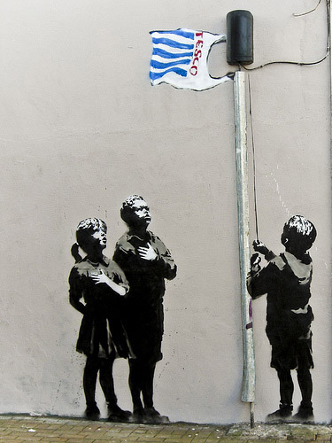 Banksy este un pseudonim, pentru un artist graffiti, activist politic, regizor de film și pictor englez.