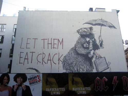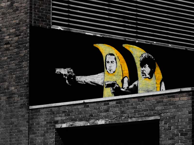 Arta urbana satirica și epigramele subversive combină umor negru și graffiti făcute după un șablon distinctiv. Astfel de lucrări artistice de critică politică și socială au fost prezente pe străzi, pereți și poduri din orașe din întreaga lume.