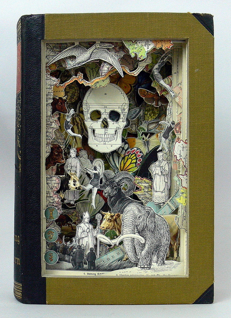 Artistul Alexander Korzer-Robinson creează opere incredibile de artă sculptand enciclopedii aruncate și literalmente expunand frumusetea lor interioara. Astfel, o enciclopedie poate deveni o fereastră într-o lume alternativă, aceste cărți, fiind deposedate de valoarea lor utilitară de trecerea timpului, recâștiga un nou scop. Ele nu mai sunt instrumente pentru a afla mai multe despre lume, ci mai degrabă un mijloc de a obține o perspectivă cu privire la sine.