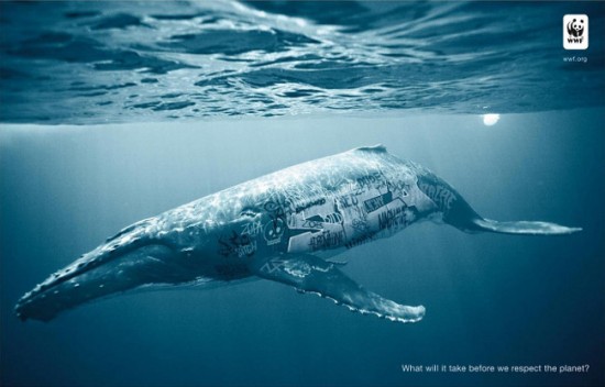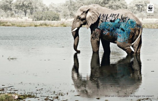 O campanie pentru WWF despre nerespectarea animalelor pe cale de dispariție, simbolizat prin graffiti direct pe un elefant, urs polar, balena și rinocer. Sursa